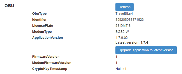 - The ‘Refresh’ button refreshes the data/details in the OBU area if clicked.