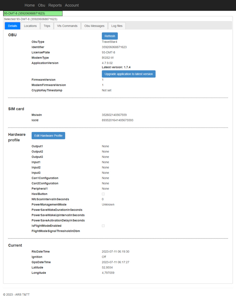 When a user enters an OBU Number/IMEI Number/License Plate, they will be directed to ‘Details’ page under navigation tab ‘OBU’.