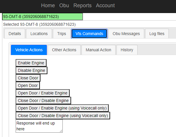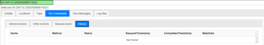When a user want to see the History of the commands run on OBU, click on ‘History’ tab under the tab ‘VTS Commands’.